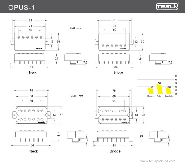 Звукосниматель OPUS-1 изготовлен с использованием эмалированной проволоки и магнитов Alnico 5. Катушки датчика залиты воском для обеспечения чистоты звука и устранения «микрофонного» эффекта, а также оснащен 4-контактным кабелем, который открывает для музыканта неограниченные возможности.