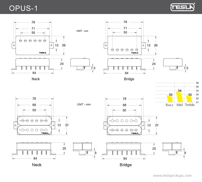Звукосниматель OPUS-1 изготовлен с использованием эмалированной проволоки и магнитов Alnico 5. Катушки датчика залиты воском для обеспечения чистоты звука и устранения «микрофонного» эффекта, а также оснащен 4-контактным кабелем, который открывает для музыканта неограниченные возможности.