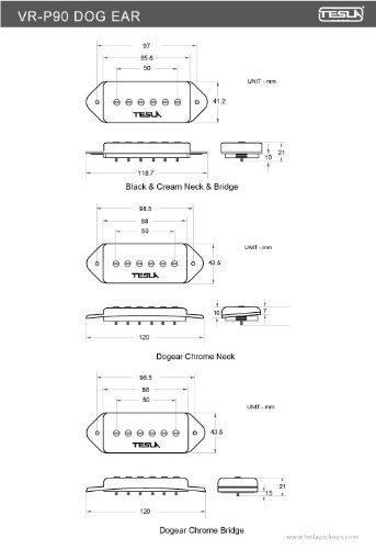 Звукосниматель VR-P90 DOG EAR изготовлен с использованием тончайшей американской проволоки с покрытием из формвара, магнитов Alnico 5, а также двухжильного экранированного кабеля. Катушки звукоснимателя покрыты воском для обеспечения чистоты звука и устранения «микрофонного» эффекта.
