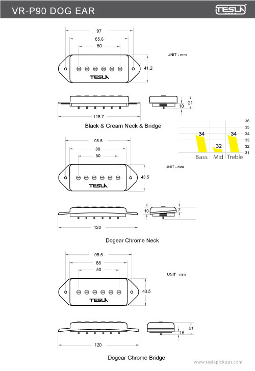 Звукосниматель VR-P90 DOG EAR изготовлен с использованием тончайшей американской проволоки с покрытием из формвара, магнитов Alnico 5, а также двухжильного экранированного кабеля. Катушки звукоснимателя покрыты воском для обеспечения чистоты звука и устранения «микрофонного» эффекта.