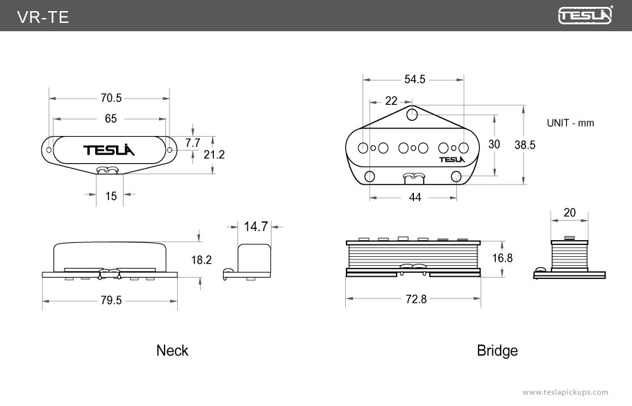 Звукосниматель VR-TE изготовлен с использованием американской эмалированной проволоки, магнитов Alnico 5, расположенных в шахматном порядке, а также проводов с тканевым покрытием. Катушки звукоснимателя покрыты воском для обеспечения чистоты звука и устранения «микрофонного» эффекта.