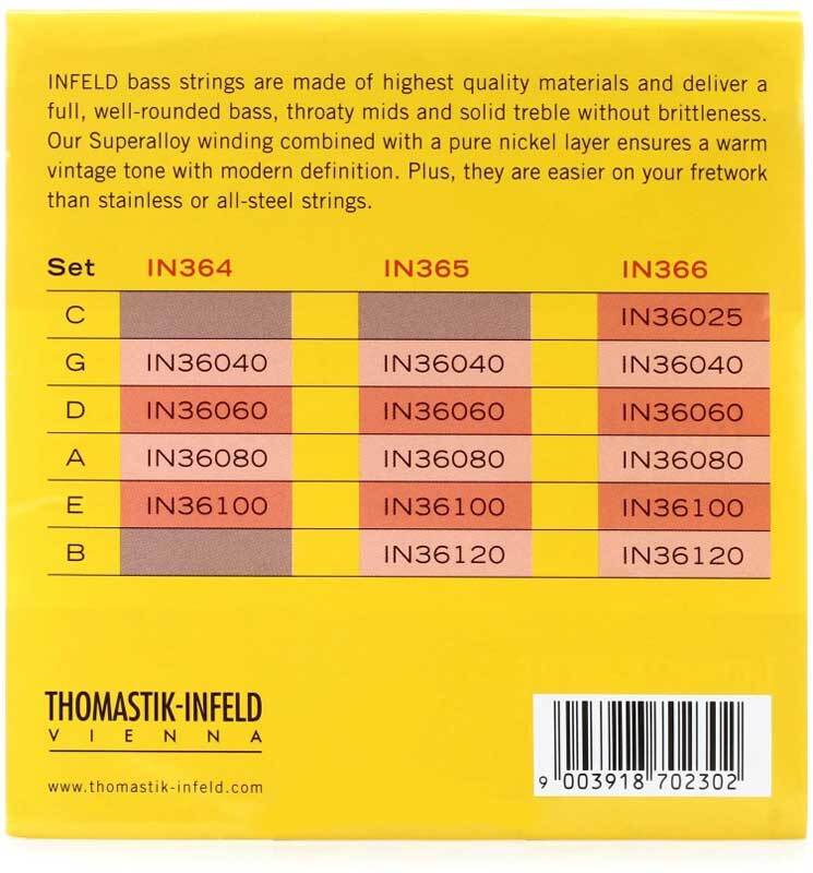 Басовые струны Infeld обеспечивают современный тон со сбалансированным звучанием по всему частотному диапазону. Они передают полный, хорошо сбалансированный бас, горластые средние и солидные высокие частоты без лишней яркости. Поскольку внешний слой обмотки выполнен из сверхпрочного сплава, сохраняется теплый тон. Кроме того, они не так стирают лады, как струны из стали.