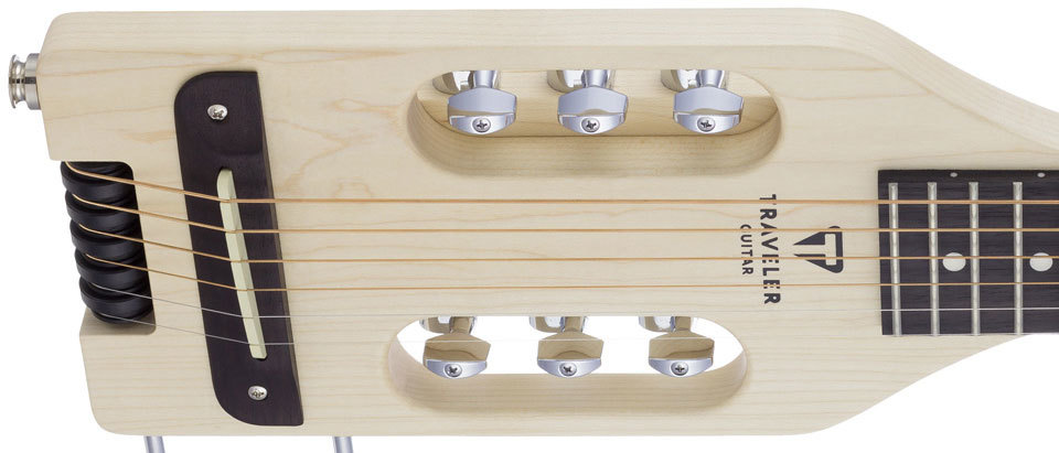 Traveler Guitar Ultra-Light - шестиструнная электро-акустическая гитара, корпус: клен, гриф: клен/палисандр(сквозной), звукосниматель: Traveler Piezo, колки: Closed Gear, мензура: 24,75'', 22 Medium лада. Цвет/фурнитура: Natural Satin Finish - натуральное дерево/хром. Чехол в комплекте. Длина - 71,12 см., Вес - 1,304 кг.