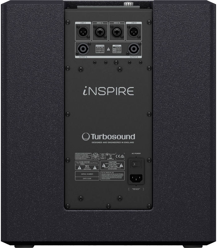 Активные сабвуферы новой серии Turbosound iNSPIRE iP12B и iP15B, позволяют создать мобильный звуковой комплект за счёт встроенного трёхканального усилителя мощности. В качестве основного используется мостовой усилитель с максимальной мощностью в 600 Вт. Именно он обеспечивает работу сабвуферного динамика. Кроме этого имеются ещё два канала усиления, к которым может быть подключена любая пассивная акустика. В качестве собственного решения Turbosound рекомендует использовать модель компактных сателлитов iP82 с 8” динамиком.