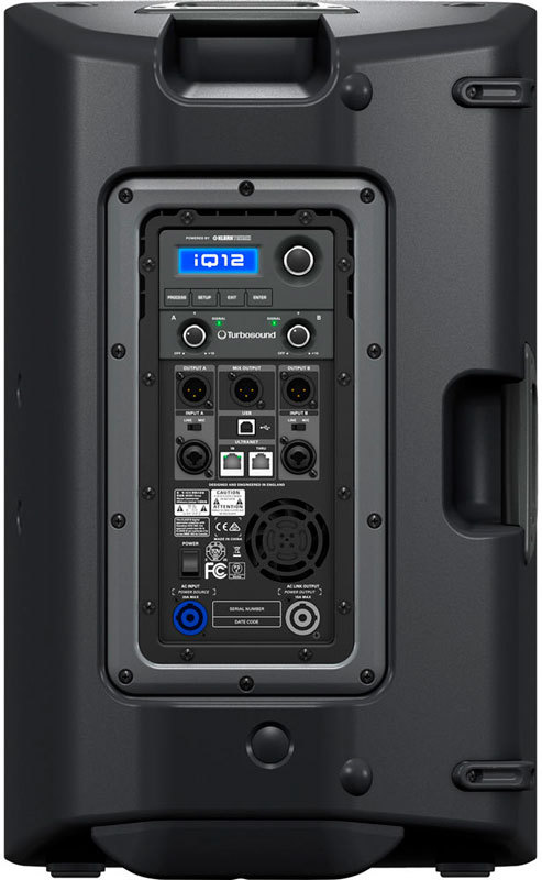 Turbosound iQ12 2500 Вт активная акустическая система, би-амп,12"+1", 2500 Вт макс, 45Гц–20 кгц -10 дБ, 80°Hx60°V, 130 дБ SPL, DSP KLARK TEKNIK, ULTRANET, USB, 3xM10, 609 x 370 x 370 мм, 21,1 кг