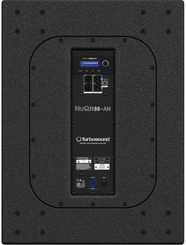 Turbosound NuQ118B-AN активный сабвуфер, 18" бэнд-пасс, усилитель 3000 Вт с DSP KLARK TEKNIK, сеть ULTRANET, дисплей LCD 128x32, 20 пресетов (19 пользовательских), 40-150 Гц (-3дБ), 136 дБ пик, 16 точек подвеса М10, 773x579x700 мм, 57.9 кг, чёрный