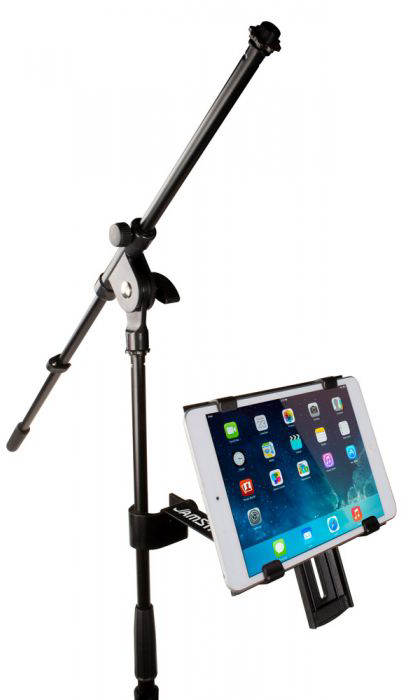Этот очень доступный держатель для iPad позволяет хранить ноты, тексты песен, сет-листы, вкладки и контакты прямо у вас под рукой! JS-MNT101 крепится к любой микрофонной стойке и надежно удерживает все iPad, включая iPad mini. Вы можете легко отрегулировать угол и ось вашего iPad в двух разных точках JSMNT101. Вы можете легко выбрать зажим iPad в альбомной или книжной ориентации, используя дополнительную ручку регулировки на задней стороне самого держателя.