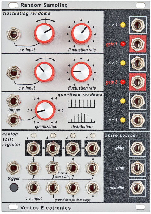Verbos Electronics Random Sampling - набор случайных источников напряжения, которые добавляют элемент неопределенности как в звуковые, так и в управляющие тракты. Random Sampling предлагает различные случайные функции, приправленные небольшой щепоткой случайных сигналов и украшенными редко наблюдаемым аналоговым сдвиговым регистром.