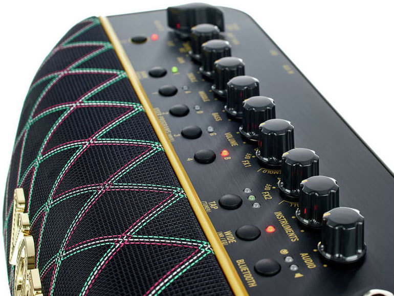 Настоящее стереозвучание выдают два 3-дюймовых динамика. Музыкантам доступны 17 разных моделей усилителей для самой разной музыки и творчества и 19 типов лучших эффектов обработки. Есть дополнительное гнездо AUX для подключения МР3 плеера. Беспроводная связь Bluetooth для подключения медиаустройства, использования усилителя в качестве проигрывателя аудио.