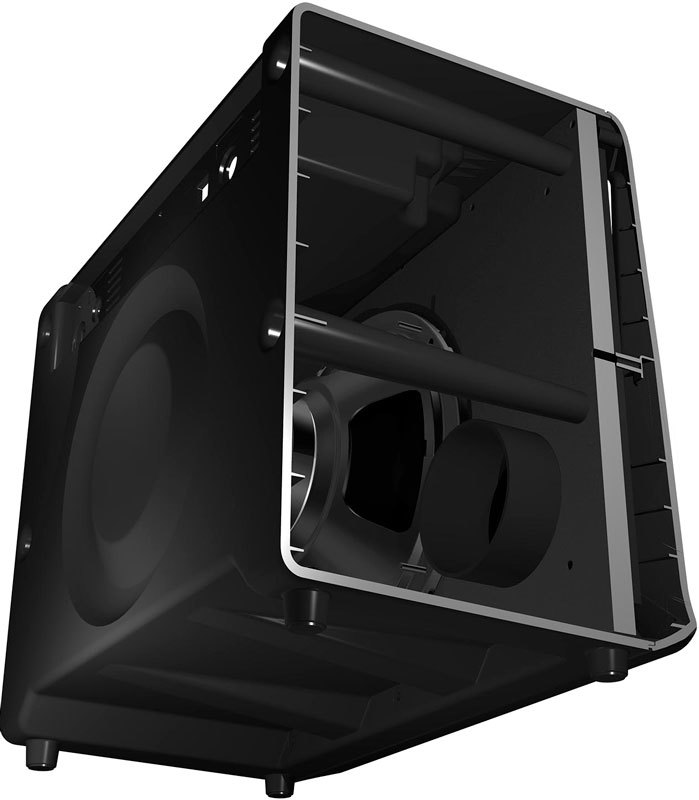 Конструкция кабинета из прочного АБС пластика обеспечивает минимальный вес и уменьшает вибрации, при этом он обладает отличными акустическими свойствами, позволяет получить очень мощный для такого компактного усилителя звук, густые и плотные низкие частоты. USB аудио интерфейс позволяет соединяться с компьютером для осуществления записи напрямую. Вход AUX позволяет проигрывать записи с внешних источников, а разъем для подключения наушников оснащен симулятором кабинета для получения максимально естественного звучания.
