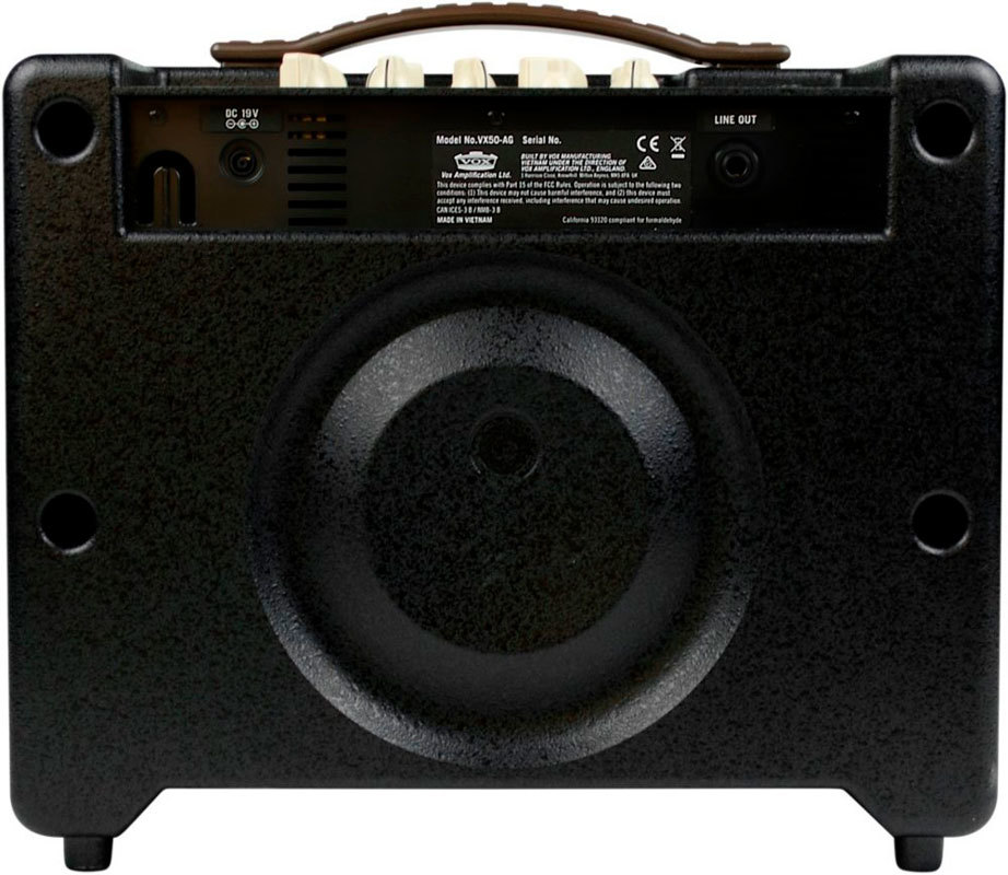 Vox VX50-AG – 2-канальный гибридный комбоусилитель мощностью 50 Вт с 8-дюймовым динамиком, технологией NuTube, входами 1/4" и XLR, встроенными эффектами, фантомным питанием и выходом на наушники.