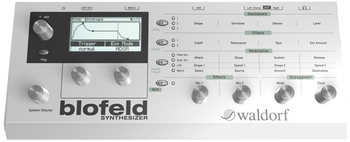 Waldorf Blofeld Keyboard набирает вес не только внешне, но ещё и внутренне: помимо виртуального аналогового синтеза и классических волновых таблиц устройство снабжено 60 мегабайтами сэмплерной памяти.