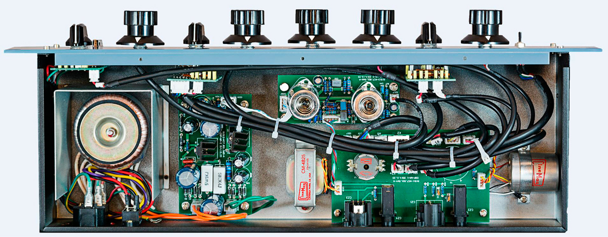 - Секция EQ является «обходной» - сигнал проходит через лампы и трансформаторы, что делает звук «тёплым»