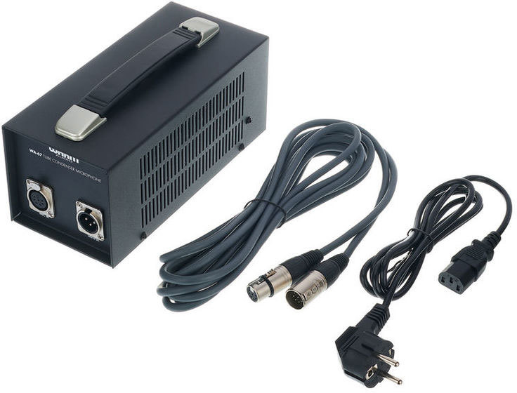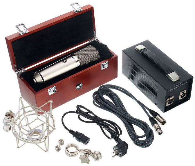 В комплект поставки включены следующие аксессуары: блок питания, 7-pin кабель, жесткий держатель, амортизатор и деревянный кейс. Микрофон оптимально подойдет для студийной работы с практически любыми музыкальными инструментами.