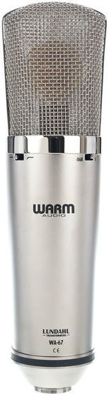 Warm Audio WA-67 – это студийный конденсаторный микрофон с большой диафрагмой и пентодной лампой EF86. Данная модель обладает собственным источником питания, прочным 7-контактным кабелем и 3 вариантами диаграммы направленности (кардиоидой, восьмеркой и всенаправленной).