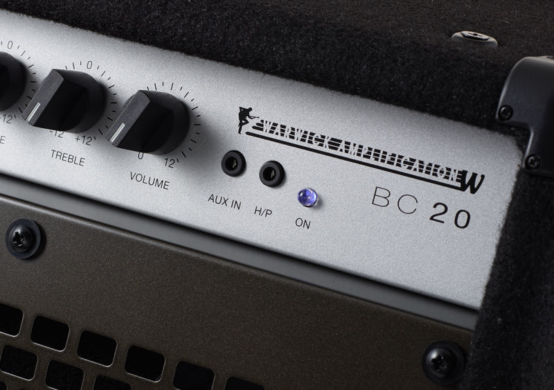 Хороший комбик для домашних занятий или тихих репетиций. Свои 20 Ватт выдаёт честно, динамик 8-дюймов - низы есть, также имеется и пищалка. Имеются два входа - для активного или пассивного инструмента. Эквалайзер стандартный - низы, середина, верха. Есть aux вход (мини-джек), выход на наушники (тоже мини-джек). Дизайн у комбика стильный, обит черным войлоком, массивная защитная металлическая крышка. Собран надежно, качественно - можно играть и с комфортом сидеть на нем. Из минусов, пожалуй, - это отсутсвие линейного выхода.