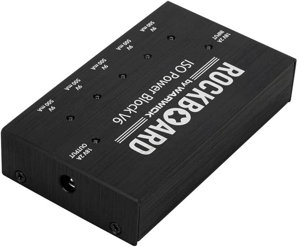 RockBoard ISO Power Block V6 - это мультиблок питания для педалей эффектов с 5 изолированными трансформаторами и высокофильтрованными разъемами питания 9V DC и одним выходом 18V DC link для последовательного подключения нескольких ISO Power Blocks V6 к большим системам. Передовая технология фильтрации, используемая в разъемах питания 9 В постоянного тока, предотвращает высокочастотные шумы. Благодаря защите от короткого замыкания в отдельных разъемах, подключенные педали эффектов будут защищены в случае короткого замыкания. Светодиодный индикатор для каждого гнезда питания показывает, что гнездо работает правильно, что позволяет быстро выявить любые проблемы без потери питания для остальной части вашего оборудования.