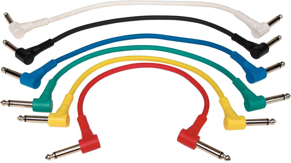 Набор коммутационных кабелей RockCable - угловой TS (6,3 мм / 1/4"), многоцветный, 6 шт. - 15 см