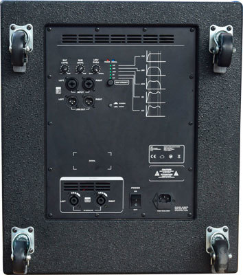 - Субвуфер с усилителем класса D, встроенным DSP процессором, индивидуальным контролем левого и правого сателлита, переключателем фаза/земля, стерео/моно, 6 DSP программами, фильтром низких частот