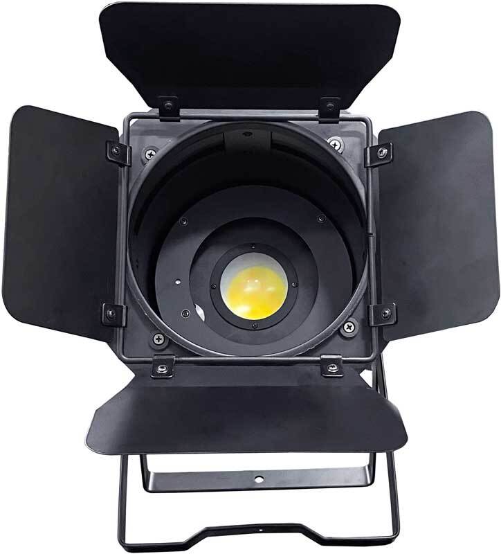 Светодиодный прибор с кашетирующими шторками. Источник света: 1 COB светодиод 200 Вт (цвета WW+CW), цветовая температура: 3200K/6500K, угол раскрытия луча: 10°-60°, эффекты: cмешение цвета, строб эффект, режим работы: звуковая активация, автоматический, DMX (3/5/7 каналов), Master/Slave, диммер: 0-100%