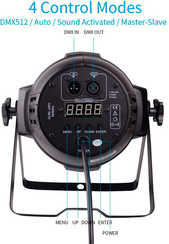 - Режим работы DMX, звуковая активация, автоматический, Master/Slave