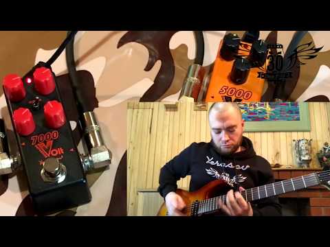 Переиздание популярного эффекта 7000 Volt получило не только компактные размеры, но и переосмысленный функционал, позволивший сохранить гибкость настроек эффекта в мини-корпусе. Трехпозиционный тумблер Mid Switch позволяет выбирать различные настройки среза/подъема средних частот, оптимально выделяя гитару в миксе. Левое положение переключателя - вырезанная середина в духе Texas Death Metal-команд. Центральное положение увеличивает количество средних частот, деля звук более читаемым. Правое положение переключателя - режим "задранных" средних частот - такое положение не годится для плотного ритма, но делает ваше соло ярким и певучим. Огромное количество гейна и плотный четкий перегруз позволяет использовать этот эффект в самых современных стилях тяжелой музыки.