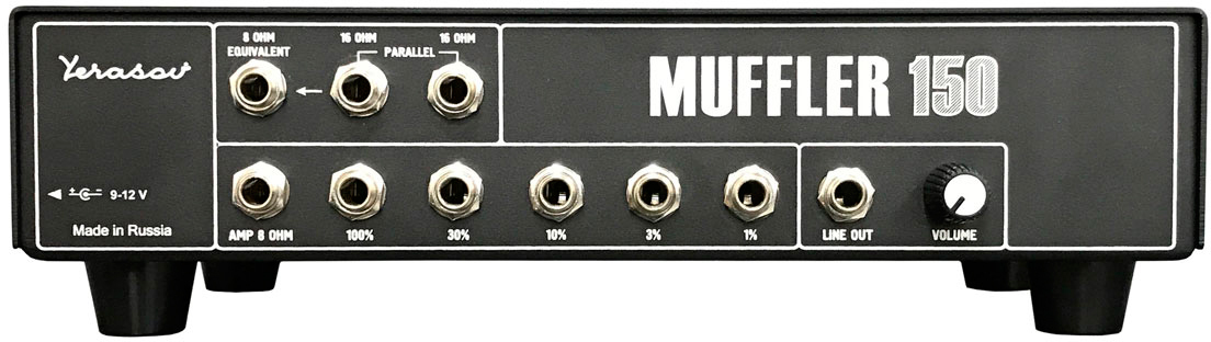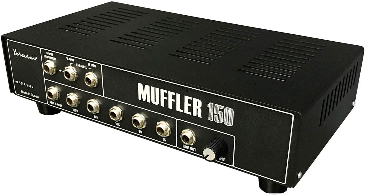 Muffler 150 - это выходной аттенюатор для усилителей мощностью до 150 Вт. Регулировка громкости звучания - ступенчатая, осуществляется переключением штекера кабинета в одно из нескольких выходных гнезд. Прибор имеет линейный выход с регулятором громкости. Muffler 150 подключается между выходом гитарного усилителя и кабинетом при помощи штекеров Jack 6,3 mm MONO. Для комбоусилителей с отсутствием коммутации выхода (гнезда и штекера между усилителем и динамиком) необходимо сделать небольшую доработку - установить эти элементы. Также аттенюатор позволяет использовать два кабинета сопротивлением 16 Ом.