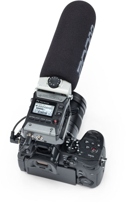 Zoom F1-SP полевой стереорекордер. В комплекте направленный микрофон-пушка SGH-6, виброподвес для крепления на камеру, ветрозащита, кабель для DSLR.