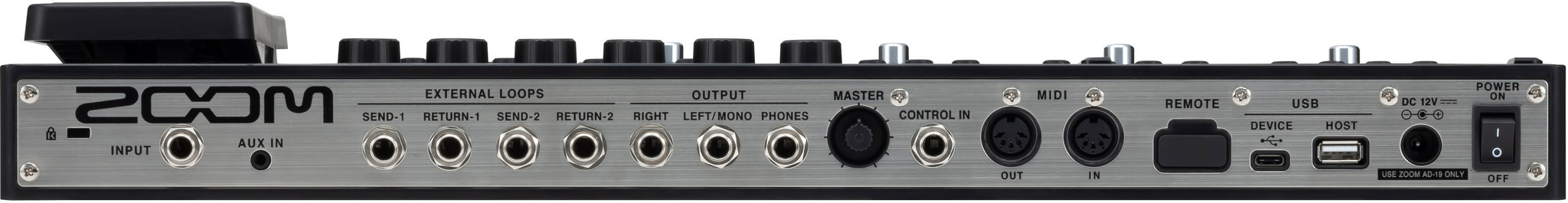 - Петля из двух send/return эффектов, а также MIDI вход/выход.