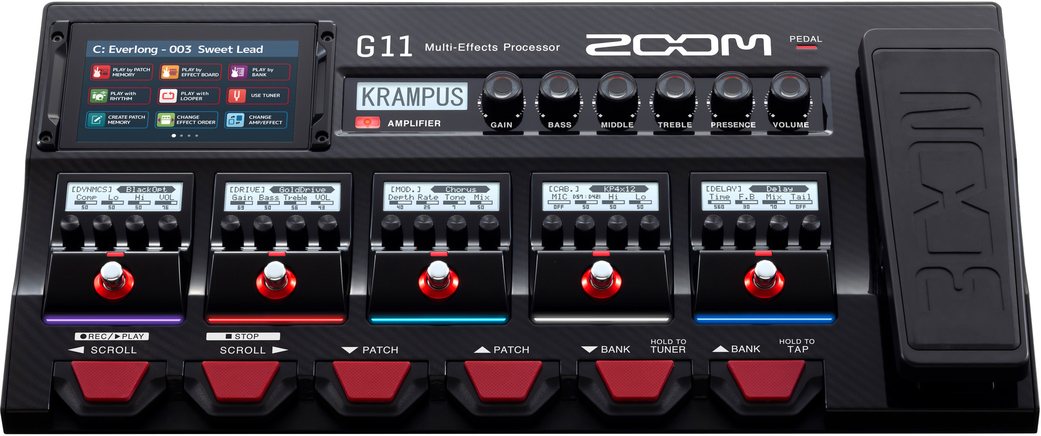 Несмотря на то, что G11 – это самый продвинутый на сегодняшний день процессор Zoom, работа с ним покажется вам очень знакомой. От работы со стомпбоксами до панели управления усилителями – все это покажется вам уже знакомым.
