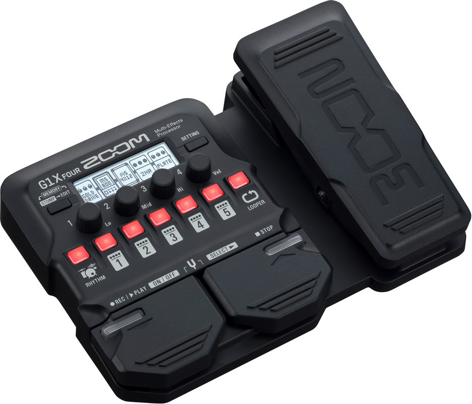 Модель G1X FOUR оснащена педалью экспрессии ZOOM, с помощью которой вы сможете управлять такими эффектами, как громкость, wah-wah, задержка и питч.