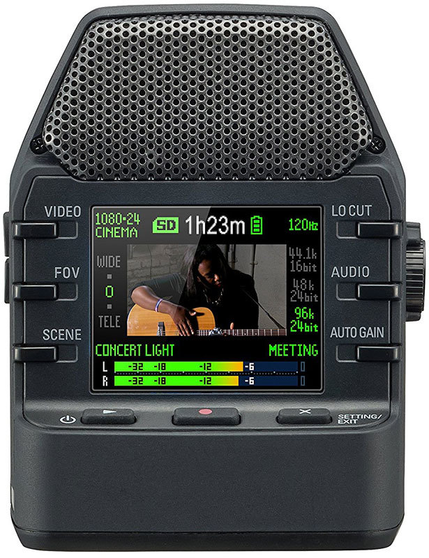 Рекордер Q2n оснащен 160-градусным широкоугольным объективом, который способен снимать видео потрясающего качества. Запись ведется в разрешениях 720p или 1080p с частотой кадров 24 или 30 FPS. Диафрагма F2.0 делает Q2n идеальным выбором для музыкантов, которые выступают в разнообразных условиях освещения. Вы можете снимать всю сцену или сфокусировать свое внимание на одном конкретном артисте, используя один из пяти режимов Field of View (Поле зрения). А цветной LCD-дисплей облегчит вам поиск идеального ракурса, а также позволит вам быстро просматривать получившееся видео.