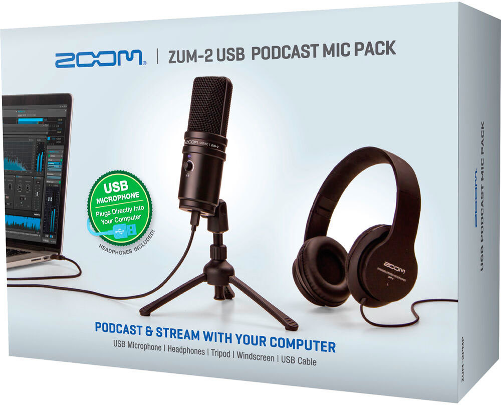 Zoom ZUM-2 PMP - Набор для подкастеров, USB-микрофон, наушники, настольная стойка, крепеж, ветрозащита, USB-кабель