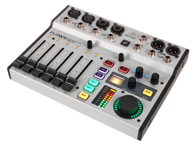 FLOW 8 – это 8 канальный цифровой микшерный пульт с поддержкой Bluetooth, двумя независимыми процессорами эффектов и USB аудиоинтерфейсом.